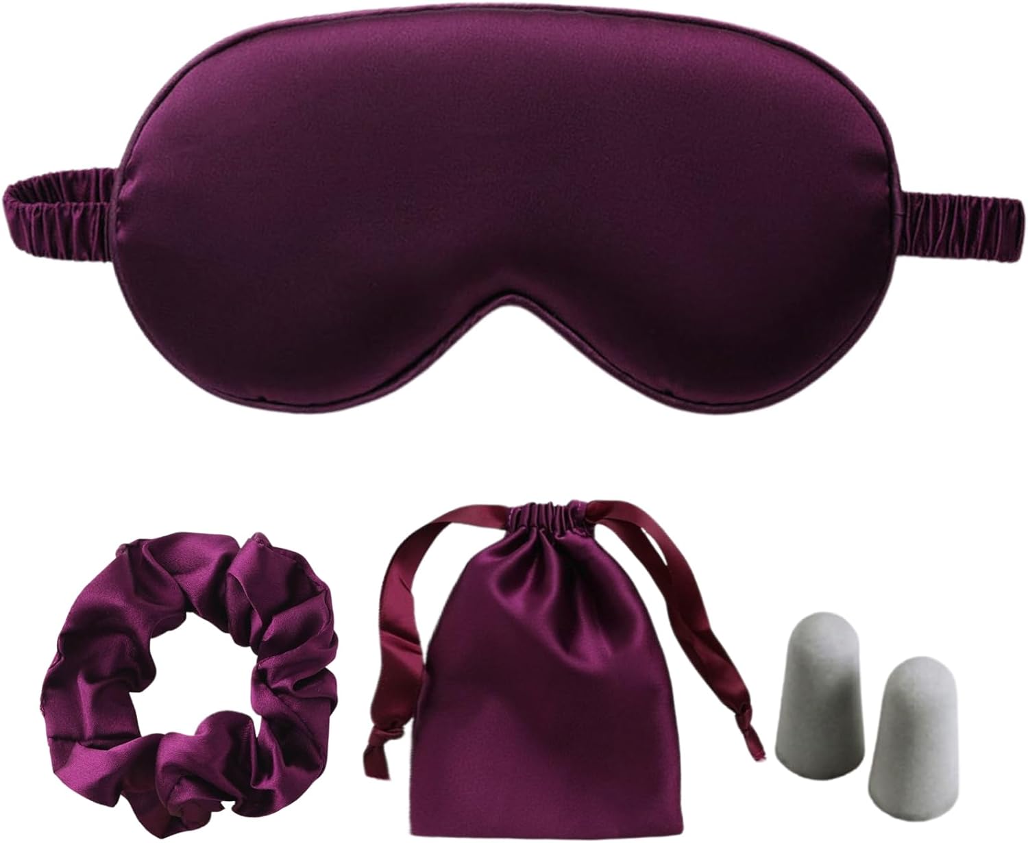Silk Satin Sleeping Eye Mask, Dark Purple Sleep Eye Mask Night Blindfold for Women and Men, Soft Breathable Blackout Eyeshade Eye Cover for Travel, Wedding Bridesmaid Gift