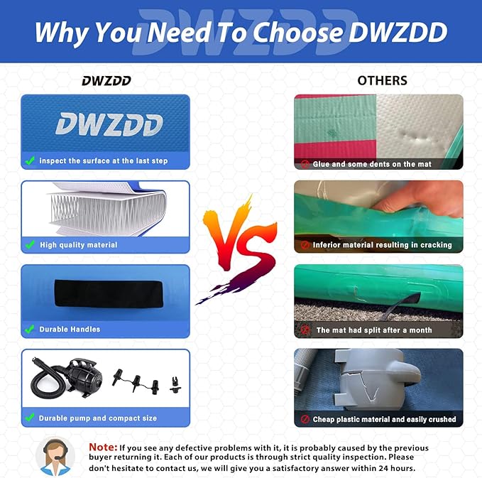 - ABOUT DWZDD -- Dwzdd team was founded in 2016 and has its own factory established in 2017, specializing in the production of gymnastics mats and SUP boards. The team has 6 years of experience in the production of gymnastics mats, and all workers have more than 4-6 years of production experience, ensuring that all aspects are strictly controlled and meticulous, providing safer and better sports products. Please don’t hesitate to contact us if you have any questions about the product. Customer's satisfaction is what we are pursuing.