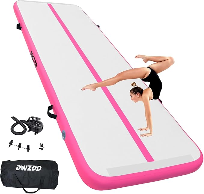 - SAFE AND DURABLE TUMBLING TRACK -- Dwzdd inflatable air mat is highly versatile and can be used for high-performance training, gymnastics workouts, and professional training at home, gym, school, or recreation areas. It comes with a multi-use electric inflatable pump, repair kit, bag, and user manual for easy setup and maintenance. Available in different sizes (6.6ft-20ft training mat), our gymnastic mat can accommodate different training needs and preferences.