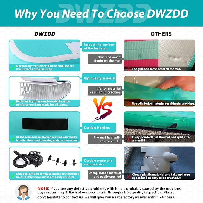 - ABOUT DWZDD -- Dwzdd team was founded in 2016 and has its own factory established in 2017, specializing in the production of gymnastics mats and SUP boards. The team has 6 years of experience in the production of gymnastics mats, and all workers have more than 4-6 years of production experience, ensuring that all aspects are strictly controlled and meticulous, providing safer and better sports products. Please don’t hesitate to contact us if you have any questions about the product. Customer's satisfaction is what we are pursuing.