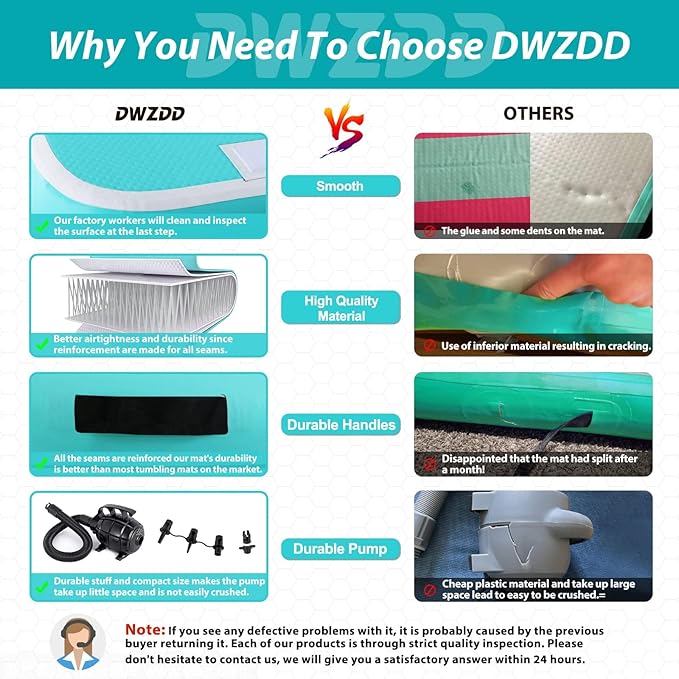 - ABOUT DWZDD -- Dwzdd team was founded in 2016 and has its own factory established in 2017, specializing in the production of gymnastics mats and SUP boards. The team has 6 years of experience in the production of gymnastics mats, and all workers have more than 4-6 years of production experience, ensuring that all aspects are strictly controlled and meticulous, providing safer and better sports products. Please don’t hesitate to contact us if you have any questions about the product. Customer's satisfaction is what we are pursuing.