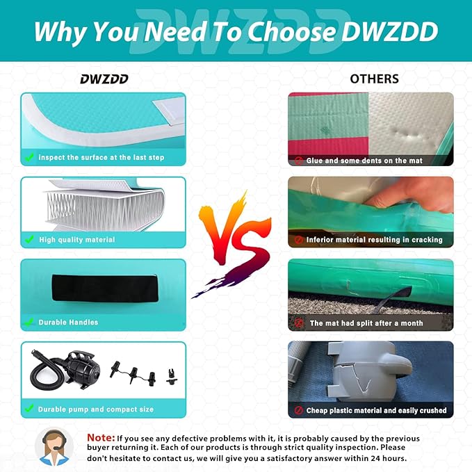 - ABOUT DWZDD -- Dwzdd team was founded in 2016 and has its own factory established in 2017, specializing in the production of gymnastics mats and SUP boards. The team has 6 years of experience in the production of gymnastics mats, and all workers have more than 4-6 years of production experience, ensuring that all aspects are strictly controlled and meticulous, providing safer and better sports products. Please don’t hesitate to contact us if you have any questions about the product. Customer's satisfaction is what we are pursuing.
