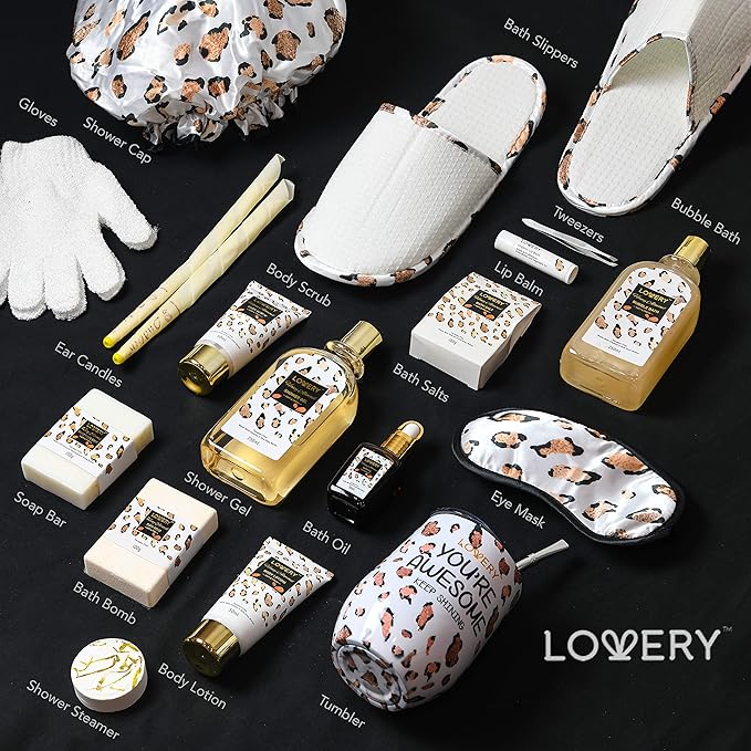- SENDING THE GIFT OF LOVE - Lovery ensures that every Bath Set is ready to go as a gift without any additional wrappers needed. The High-End Leopard Print Basket Packaging alone is enough to create an impression on Mother’s Day, Birthdays, Weddings, Anniversaries, Christmas, Holidays, Valentine’s Day and all sorts of occasions.