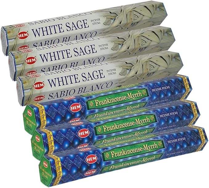 - Hem Incense sticks variety pack includes White Sage fragrances.