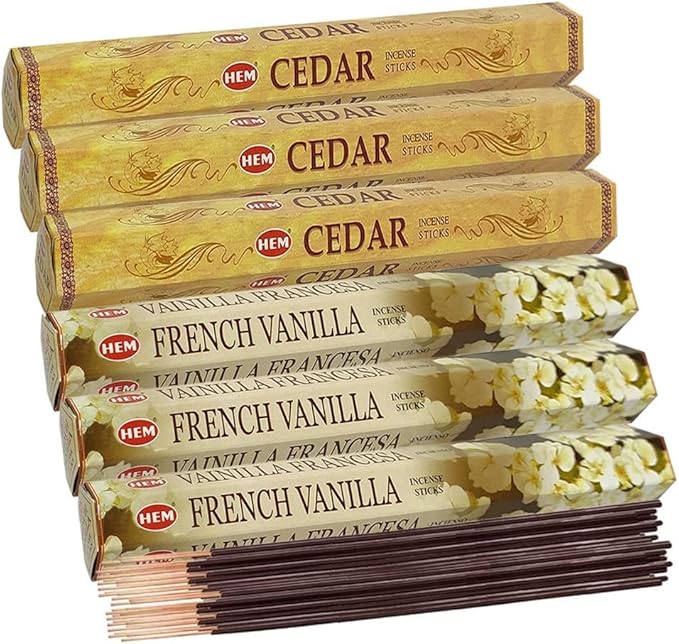 - Hem Incense sticks variety pack includes French Vanilla|Cedar fragrances.