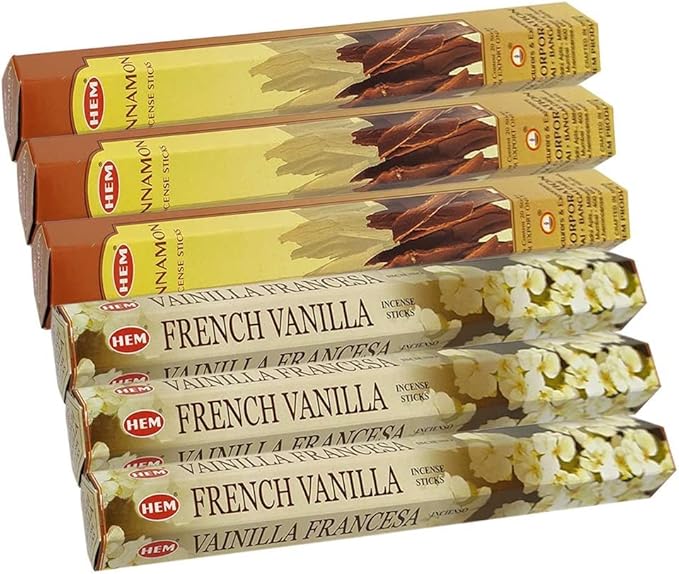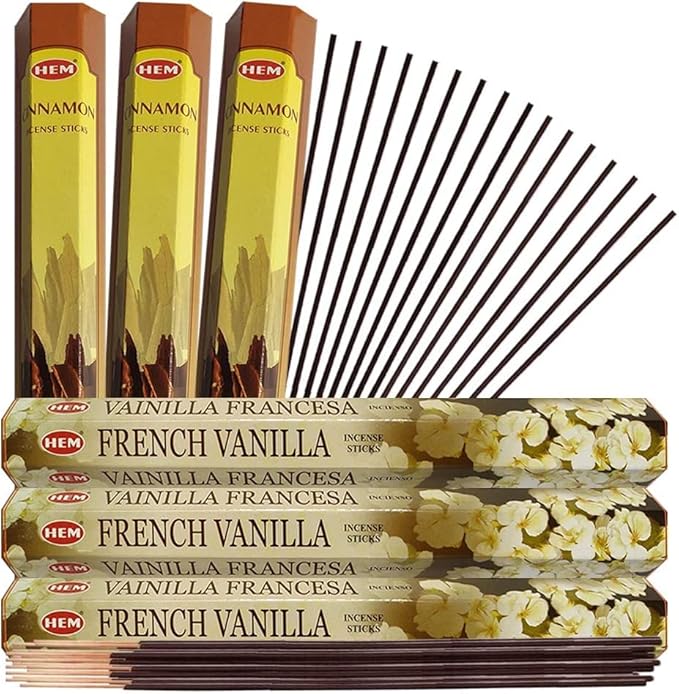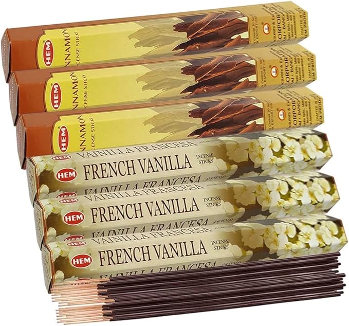 - Hem Incense sticks variety pack includes French Vanilla|Cinnamon fragrances.
