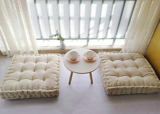 Verpert Floor Pillow 25x25 Inch,Square Meditation Cushion Floor Seating for Adults,Oversized Tufted seat Cushion Reading Nook for Kids, Yoga Meditation Pillow for Sitting on Floor, (Beige)