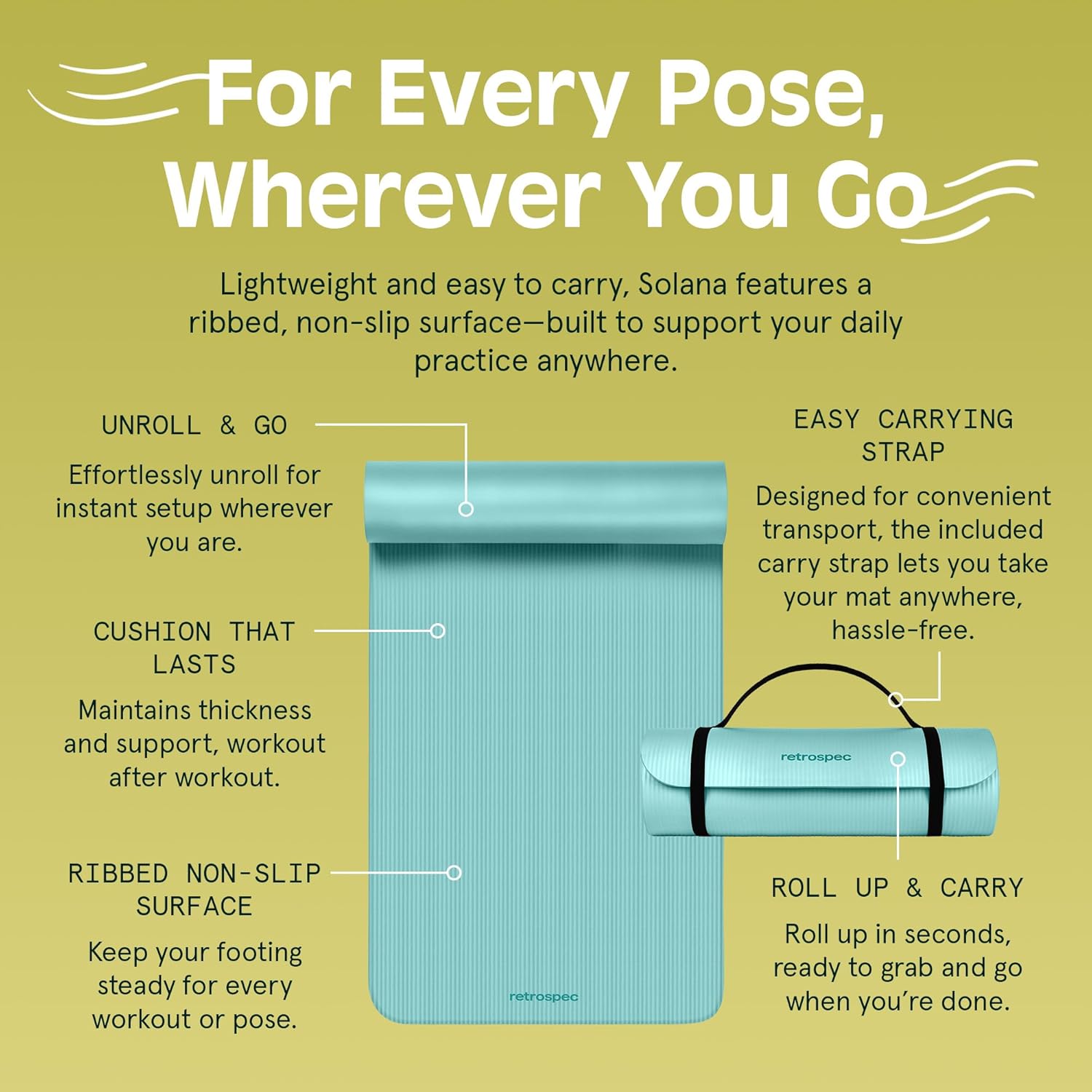 Retrospec Solana Yoga Mat 1/2" Thick w/Nylon Strap for Men & Women - Non Slip Exercise Mat for Yoga, Pilates, Stretching, Floor & Fitness Workouts