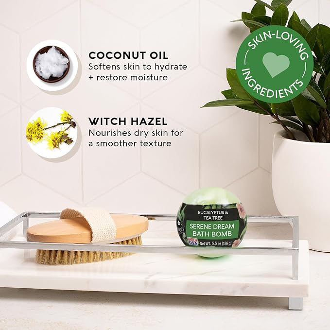 Nature's Beauty Eucalyptus & Tea Tree Bath Bomb Multi-Pack- Natural Hand Crafted, Non-Staining, Luxury Fizzy Spa Bomb, Sooth + Restore Skin, Made w/Coconut Oil & Witch Hazel, 5.5oz (4 Pack)
