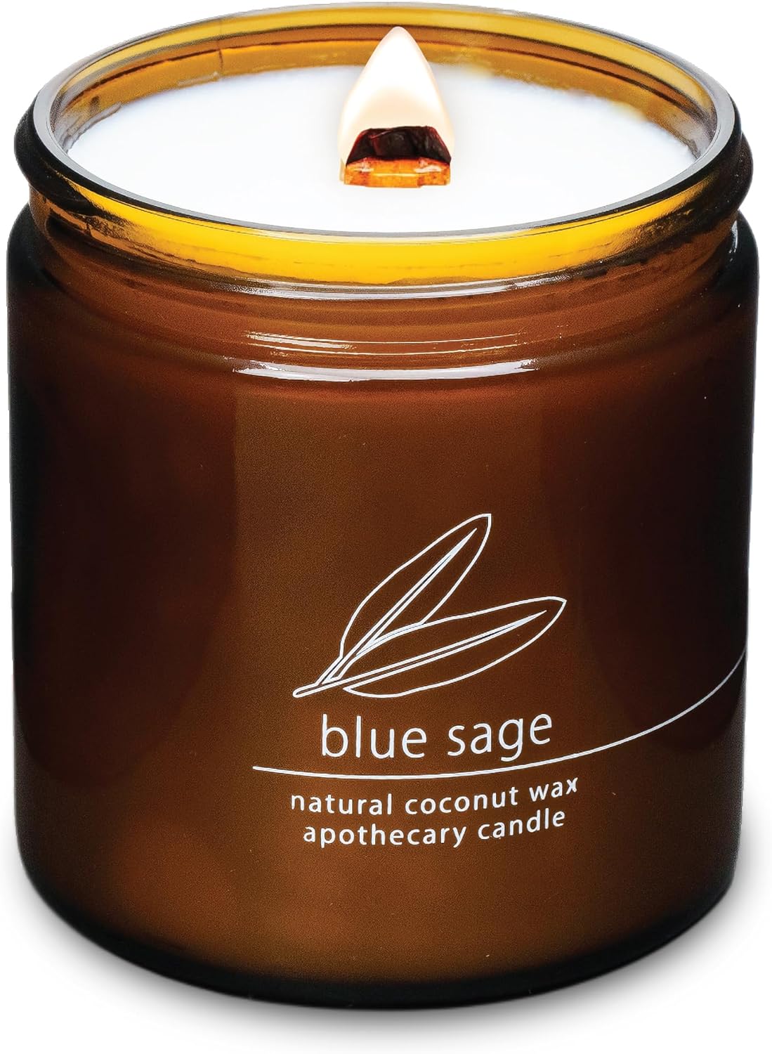 Hemlock Park Crackling Wood Wick Candle Handcrafted with Natural Coconut Wax (Large 16 oz, Blue Sage)