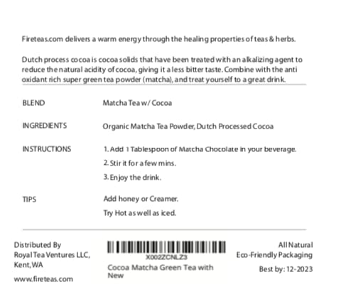 - Flavor : Chocolate Matcha Green Tea Powder