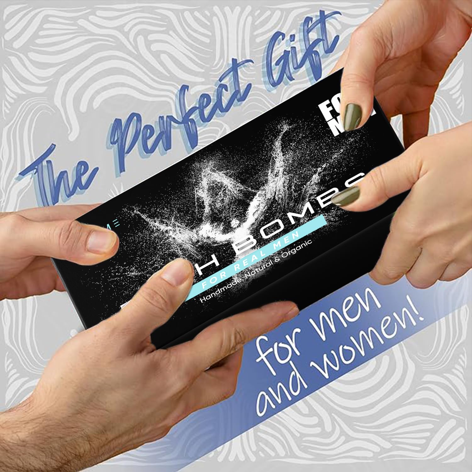 - Aromatherapy – Each men’s bath bomb uses aromatic essential oils to improve the health of the body, mind and spirit. Vitalizes the body, balances the mind, soothes the skin, relaxes and soothes sore muscles and leaves the skin soft and full of moisture.