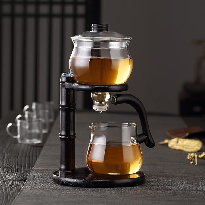 Lazy Kungfu Glass Tea Set Semi Automatic Drip Rotating with Infuser Glass Teapot Set