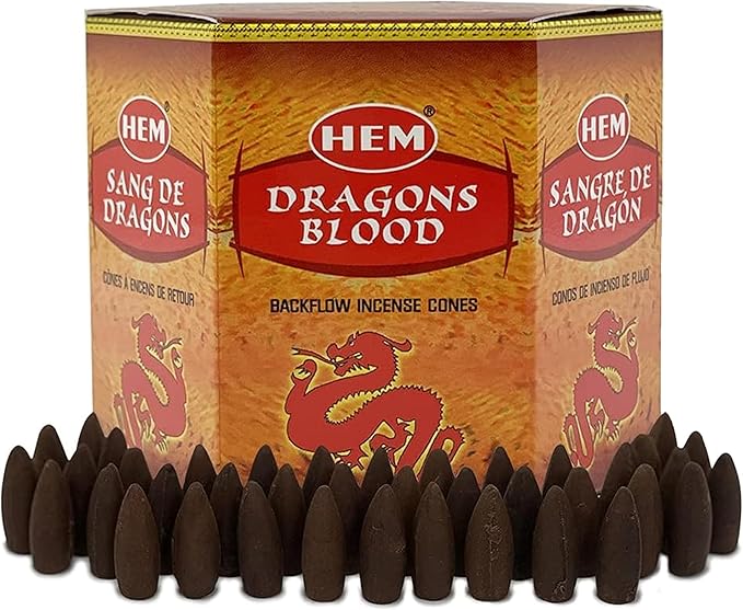 Dragons Blood Hem Backflow Incense Cones for Waterfall Aromatic Smoke Fountain Haze Falls - 40 Large Back Flow Incense Cones Scented