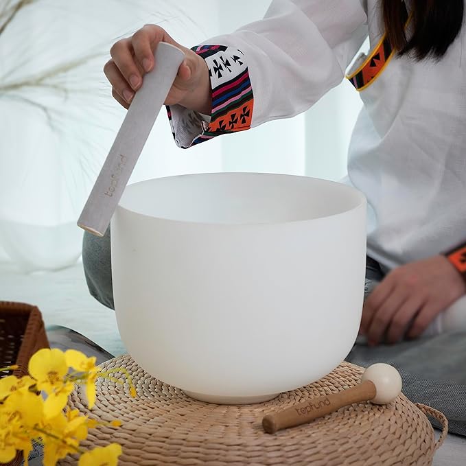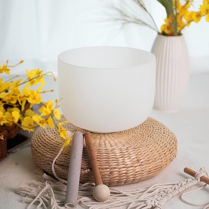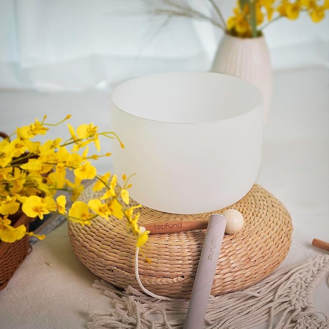 - This gorgeous TOPFUND adrenals chakra singing bowl is handcrafted grinding and polishing tuned to 440hz pitch perfect C# note 4th octave. The TOPFUND quartz singing bowl is made from highest quality quartz crystals, the amazing bowl has a unique TRANSLUCENT white color. The crystal singing bowl comes with a heavy duty carrying case and a suede bundle bag for sound therapy meditation. The mallet suede striker O-ring packed in a bundle pocket.