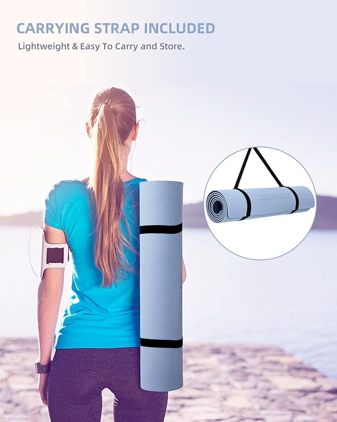 - YOGA MAT WITH STRAP: The yoga mat for women is lightweight and portable with the included carrying strap, providing you an easy way to carry your mat to the gym or yoga studio