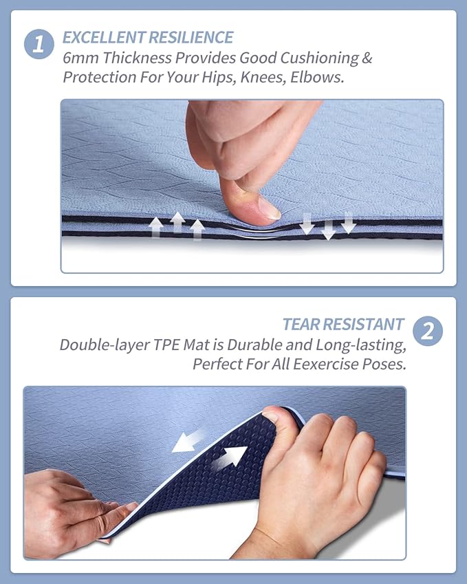 - DOUBLE-SIDED NON SLIP DESIGN: The design of anti-skid texture on both sides and Hexagon texture(unique patented non-slip pattern)on the back features good cushioning and optimal grip, ensuring that you stay in place during even the challenging poses, allowing you to focus on your breath and movement. Our non slip yoga mat is suitable for hot yoga, pilates, and any indoor or outdoor fitness routines