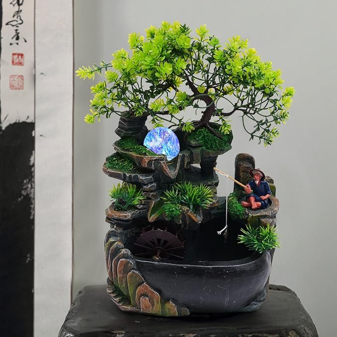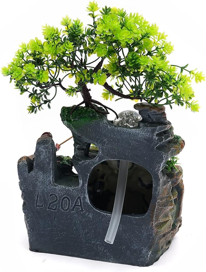 - Sparkling Led Lights: Enjoy our water feature led fountain lights in the evening on your garden patio or bedroom table. The colorful light and artificial landscape make the tabletop fountain the perfect choice for decoration. This desktop fountain is made of high quality synthetic resin material, non-toxic, safe and durable.