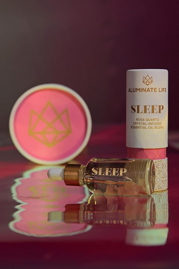Crystal Infused Essential Oil Vial, 1 Oz, Sleep - Rose Quartz Crystal Infused - Scents of Rose, Lavender, and Vanilla - Aromatherapy Oils, Massage, Stress Relief
