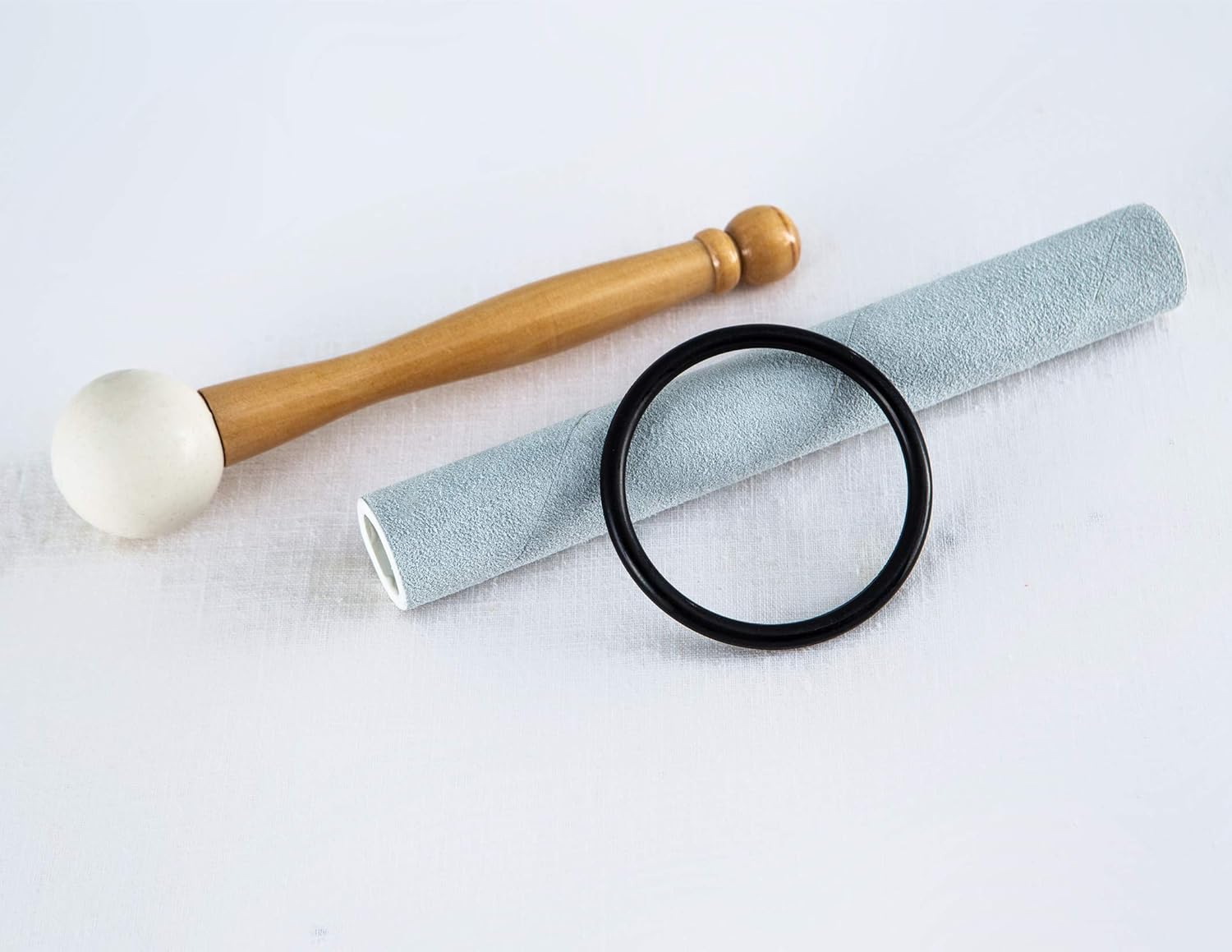 - Package includes: 1 * 8 inch wide white high quality crystal singing bowl, 1 * thick cowhide suede striker, 1 * rubber mallet, 1 * one O-ring