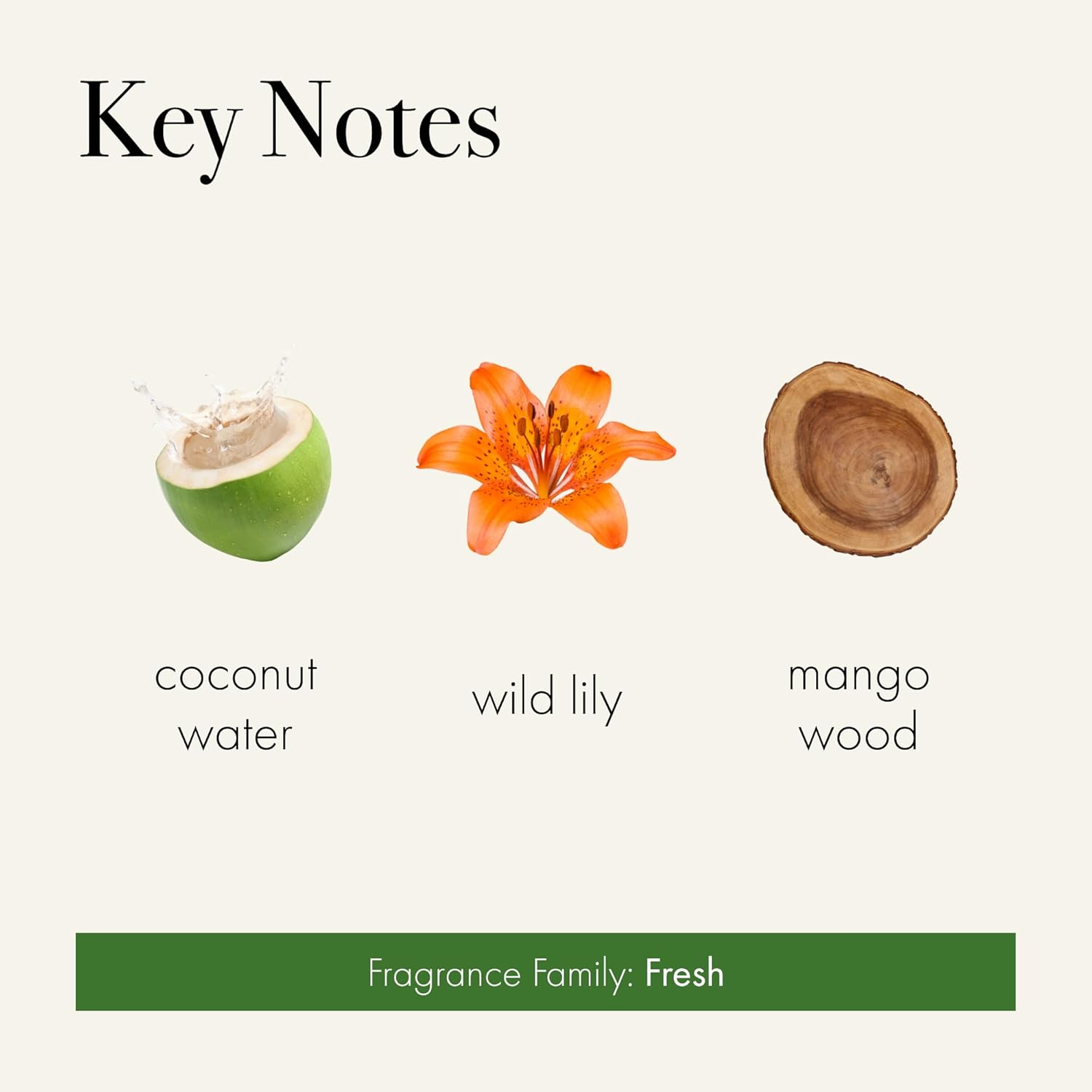 - SCENT - Jungle Bloom features fresh coconut water collected on a canopy of lush palm leaves. Dense vines mingle with the exotic sweetness of wild lily & frangipani blossoms. Sun-bleached mango wood gives shelter to the tangled green below.