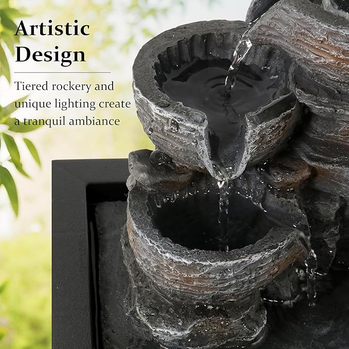 - Relaxing Waterfall Sounds for Stress Relief:Enjoy the calming sounds of water cascading down three tiers, creating a peaceful ambiance ideal for relaxation, meditation, or yoga. This indoor fountain transforms your space into a tranquil oasis.