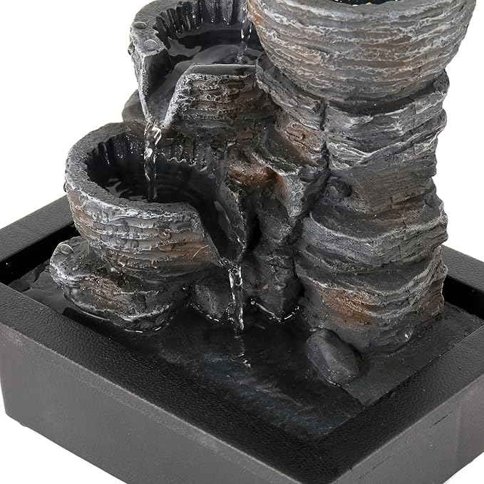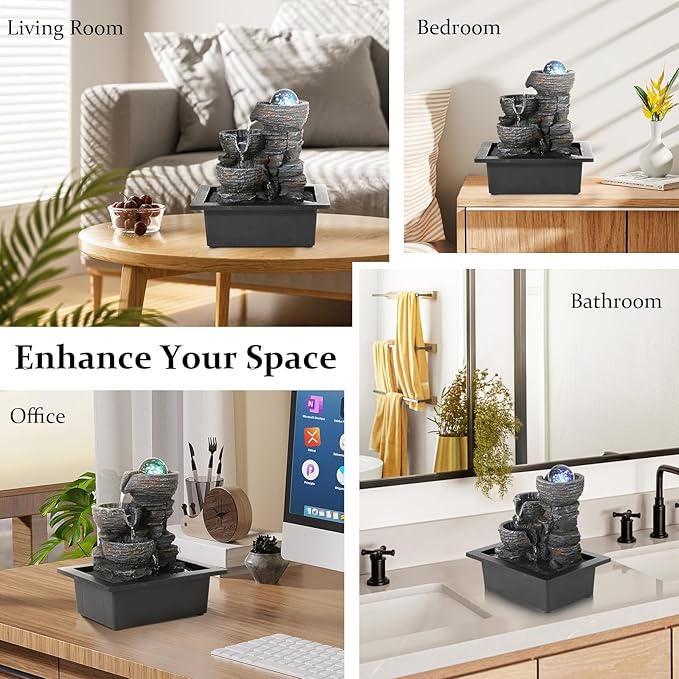 - Compact Size for Versatile Placement: Measuring 10''X9''X6.9'', this indoor waterfall fountain fits perfectly on any tabletop, desk, or shelf. Its compact size makes it ideal for small spaces, including offices, apartments, and dorm rooms.
