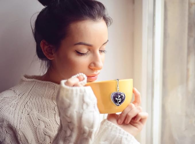 2pcs Tea Infuser Tea Strainers for Loose Tea Amethyst & Rose Quartz Crystal Heart Pendant Infinity Love Heart Couple Handmade Gemstone Tea Ball Set Gifts for Women Gifts for Mom