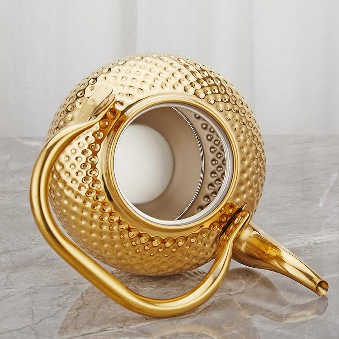 SANQIAHOME 2000ml teapot with Infuser stainless steel Water Boilers lifting handle Tea Maker Water Kettle for Induction/Gas gold