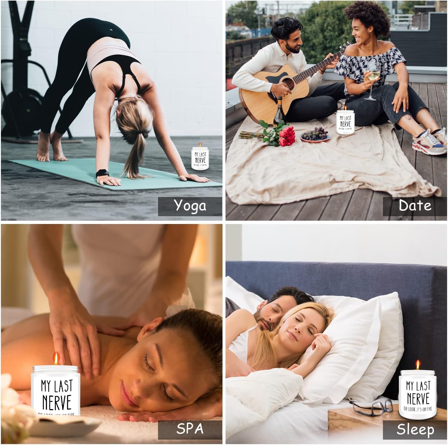 - BEST GIFTS FOR WOMEN MEN: The funny lavender-scented jar candle with the saying “My Last Nerve, Oh Look It's on Fire.” It is a great and unique gift for women and men. Perfect mothers day gifts for mom, fathers day gifts for dad. Good gifts for best friends, family members, and lovers to show your humor and love