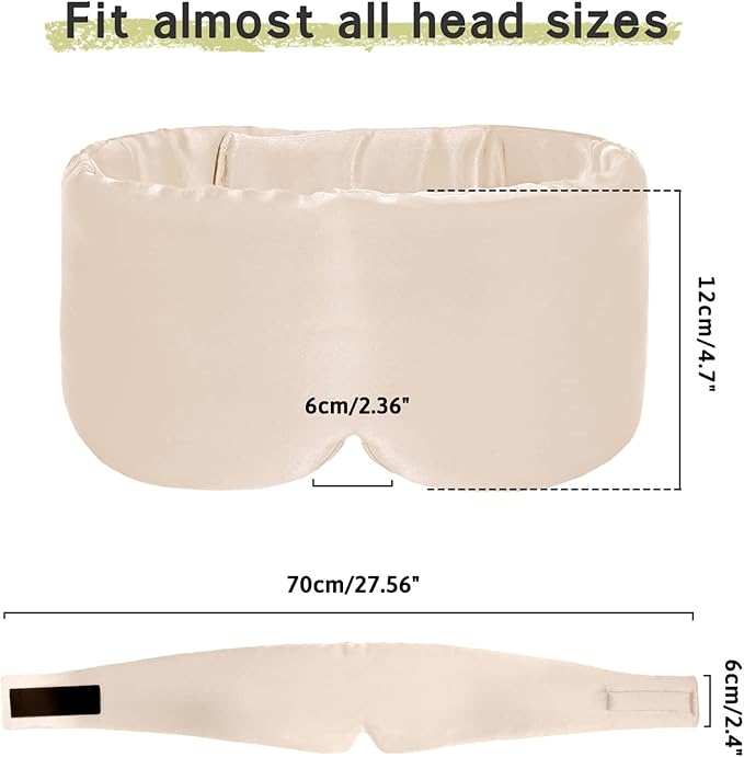 - Large Size & Adjustable: The eyemask is with Large Size to fit most head circumference and side-sleepers. You may adjust the strap to your suitable length via the Velcro, and the mask will no shift off easily. You wonât feel any pressure on your face or your eye balls with this sleep face mask, and we believe that you will want to use it in the long term