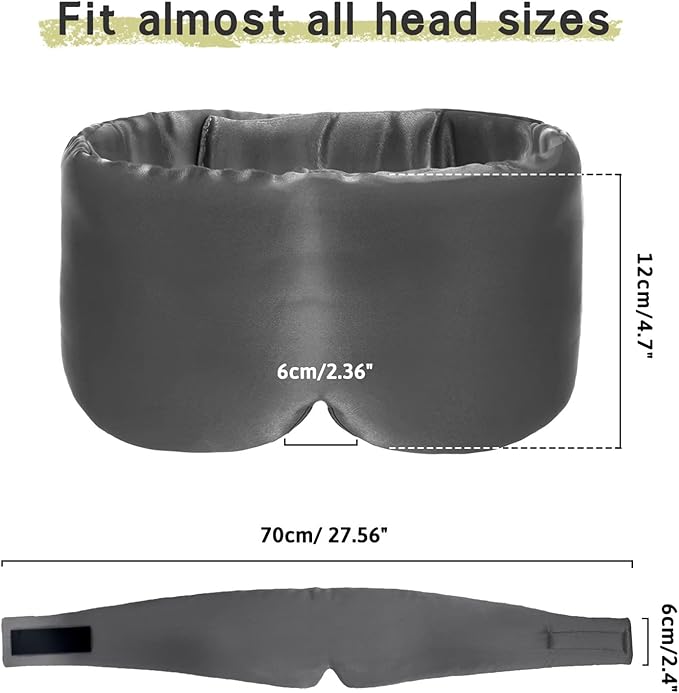 - Large Size & Adjustable: The eyemask is with Large Size to fit most head circumference and side-sleepers. You may adjust the strap to your suitable length via the Velcro, and the mask will no shift off easily. You wonât feel any pressure on your face or your eye balls with this sleep face mask, and we believe that you will want to use it in the long term