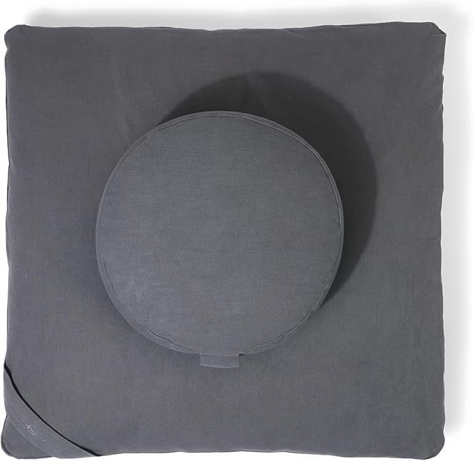 Meditation Cushion Set by renoo - Durable Comfortable Organic Cotton, Linen, Hemp - Modern Zafu Zabuton - Buckwheat Kapok Filled Floor Pillow Yoga Bolster in 15 Colors Washable Cover