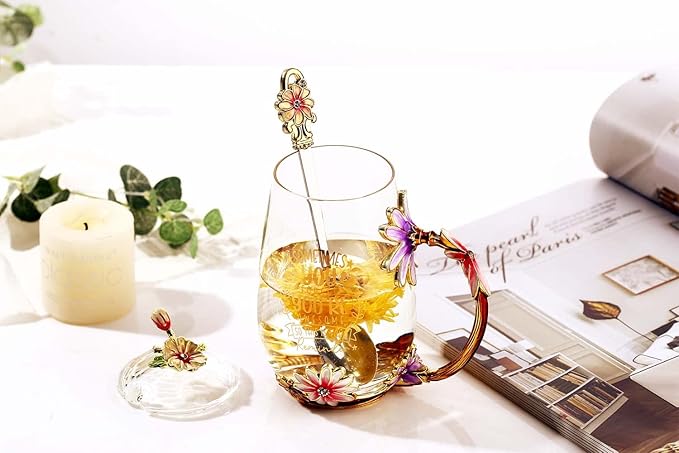 - BEST GIFTS FOR WOMEN:Flower glass tea cup can be used for your favorite hot tea, morning coffee, hot beverages, hot chocolate, milk, juice or some other daily use .The visual appeal makes this an exciting product for any home, restaurant, and office .It is great fun and good mood to you