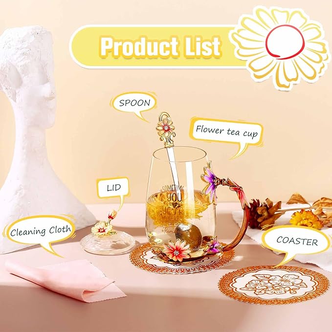 - Christmas & BIRTHDAY GIFT:The enamel glass mug handle has an elegant style with butterfly and daisy flower 3D designs. Use this mug instead of conventional flowers, and use positive energy words to express your support and thanks to your wife or mom,Sister,Friend,Grandma,bestie,corworker. A simple gift, but full of meaning.