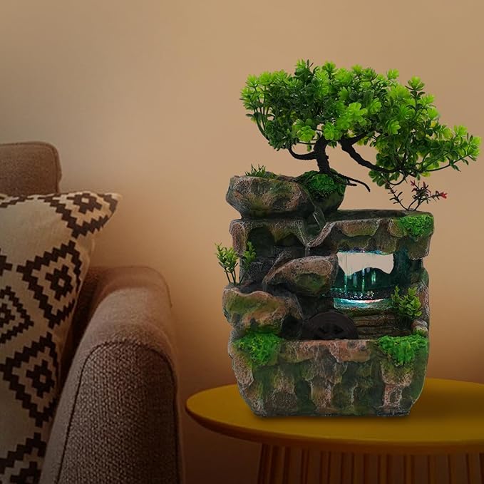 - 【Blinking LED Lights】Enjoy our water feature LED fountain lights on your garden patio or bedroom table at night. Colorful lights and man-made landscaping make tabletop fountains perfect for decoration. This tabletop fountain is made of high quality synthetic resin material, safe and durable