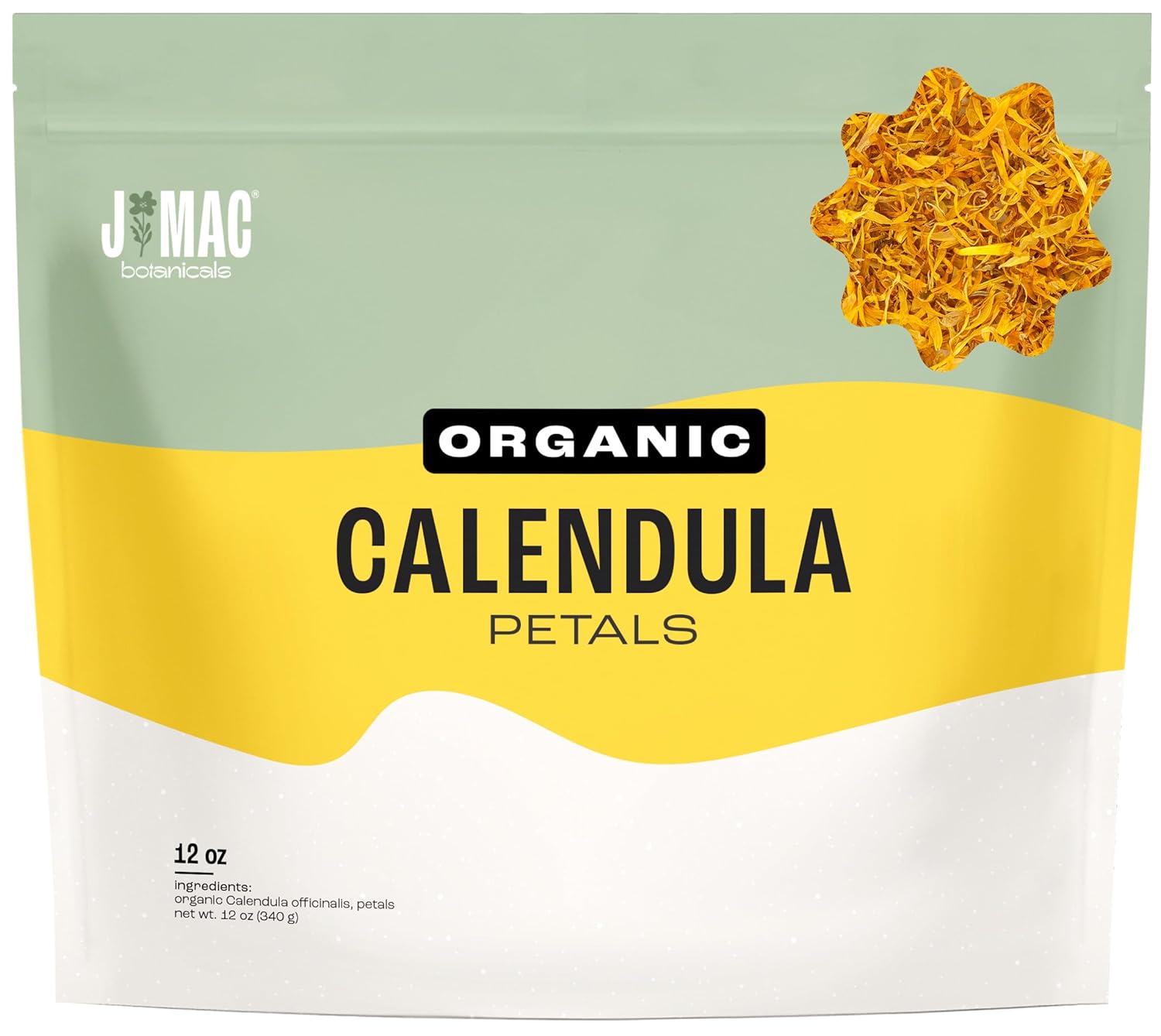 J Mac Botanicals, Organic Calendula Petals (12 oz) edible dried flowers, pairs well with rose petal for ice cubes, cooking, beverages, and bath bombs