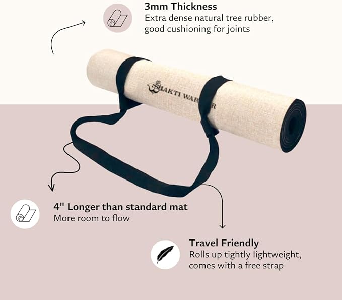 Shakti Warrior Pro Hemp Mat - Artist Designed, Premium Printed Eco-Friendly Non-Slip mat, Great for Regular & Hot Yoga, Pilates, Workouts 72 inch x 24 inch x 3mm Thick