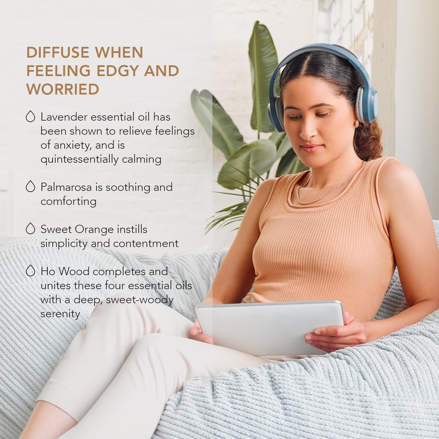 - SCENTS THAT WRAP YOUR SPACE IN CALM: Enjoy a gentle aromatic experience—True Lavender brings a soft floral tranquility; Palmarosa adds a rosy, sweet note that nurtures calm; Sweet Orange lifts the mood with a cheerful citrus brightness; and Ho Wood grounds the blend with its smooth, woody warmth. Together, they fill your room with a sense of peace, comfort, and quiet relief.