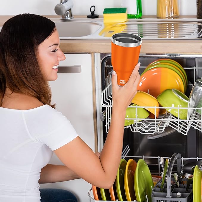 - [ Dishwasher Safe & Easy to Clean ] - The vacuum travel mug has a wide mouth, which is very convenient to clean, and can also support dishwasher cleaning, no longer have to worry about the cleaning of the mug anymore. The coffee thermos comes with two lids that are BPA-Free, so you can use them as you like.