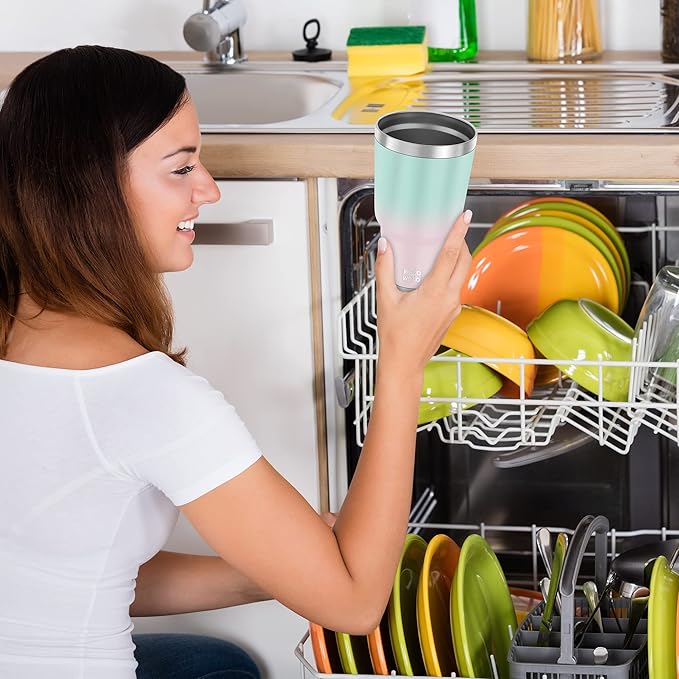 - [ Dishwasher Safe & Easy to Clean ] - The vacuum travel tumbler has a wide mouth, which is very convenient to clean, and can also support dishwasher cleaning, no longer have to worry about the cleaning of the mug anymore. The coffee thermos comes with two lids that are BPA-Free, so you can use them as you like.