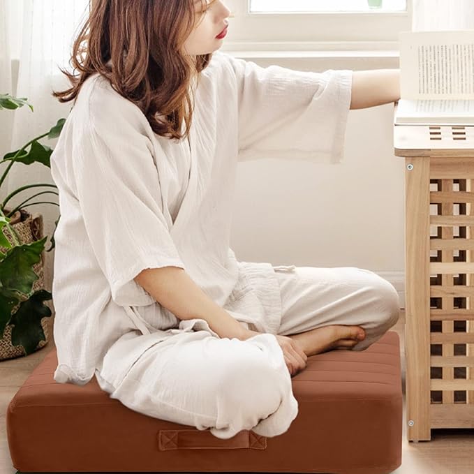- [5 Inch Thick, Firm Foam Filling] The mid of the floor pillow cushion is filled with moderately soft and hard high-density foam rather than ordinary PP cotton, comfortable, flat, and durable. The oversized floor pillow has good comfort and can relax your hip and feet, a perfect square meditation pillow can be placed on your sofa, couch, bedroom, living room, outdoor patio, hanging egg chair, or swing chair