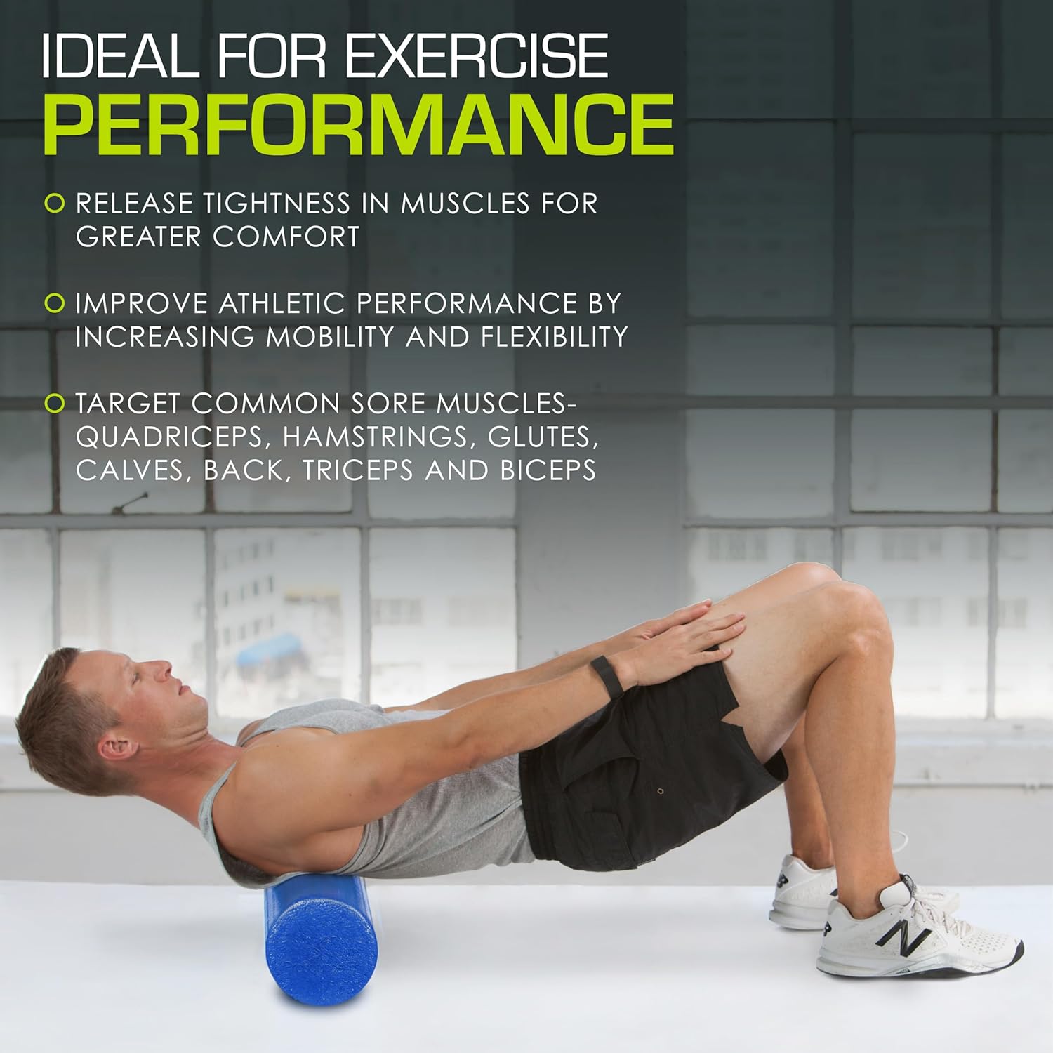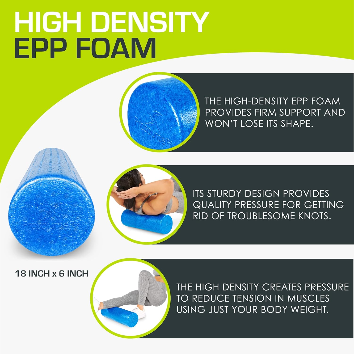 ProsourceFit High Density Foam Rollers 12 - inches Long, Firm Full Body Athletic Massage Tool for Back Stretching, Yoga, Pilates, Post Workout Muscle Recuperation, Black/Blue