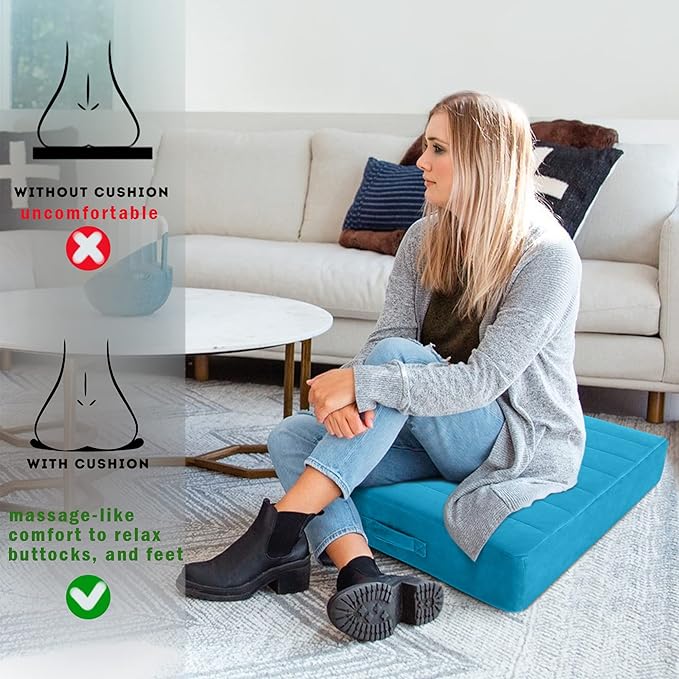 - [5 Inch Thick, Firm Foam Filling] The mid of the floor pillow cushion is filled with moderately soft and hard high-density foam rather than ordinary PP cotton, comfortable, flat, and durable. The oversized floor pillow has good comfort and can relax your hip and feet, a perfect square meditation pillow can be placed on your sofa, couch, bedroom, living room, outdoor patio, hanging egg chair, or swing chair