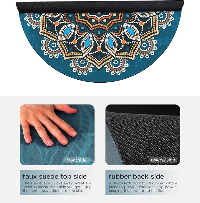 - Material: Keolorn yoga mat is made of natural rubber and suede. This suede yoga meditation mat has a diameter of 55" (140cm). The extra-large round mat is made of non-toxic and environmentally friendly natural rubber. The thickness of 3.5mm protects sports People are less likely to be injured during exercise, and relieve joint pain during exercise.