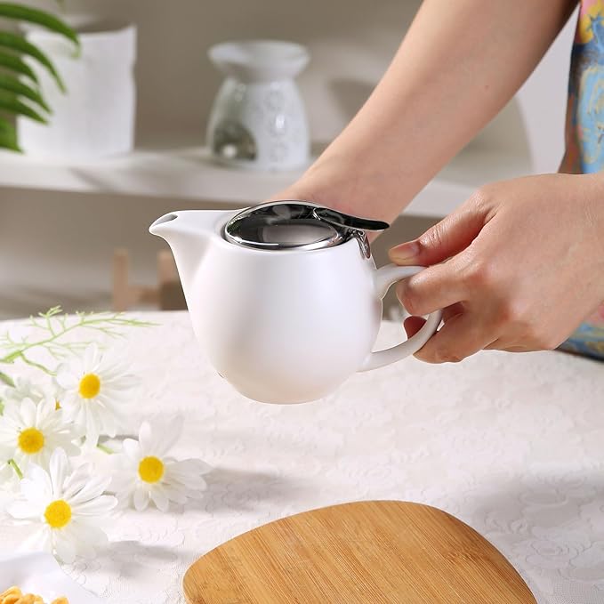 - CERAMIC TEAPOT WITH INFUSER - The teapot has a extra fine stainless steel tea infuser, perfect for varieties of teas, loose leaf tea, blooming tea, tea bags.