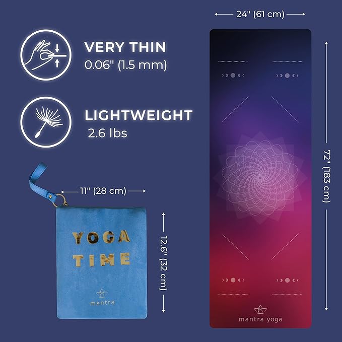 - ✈️ Compact and lightweight Yoga Mat – Looking for a yoga mat that's easy to take with you on the go? Look no further than Mantra Yoga's travel mat! Made from natural rubber and microfiber, this mat is thin and lightweight, making it perfect for practicing balance postures and maintaining a strong connection to the floor. The compact design makes it convenient to take with you on trips, use for outdoor training, or take to the studio. And when you're done, simply fold it up and tuck it away in the included small bag. With the purchase of this travel mat, you'll receive a bag for easy transport and storage. Order now and experience the convenience of a travel mat for yourself!