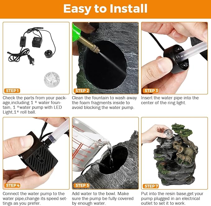 - 【Easy to use】The portable indoor water tabletop fountain is easy to use, just add water to the indoor waterfall fountain and plug in a standard power outlet. Then you can enjoy the soothing effect of this indoor fountain.