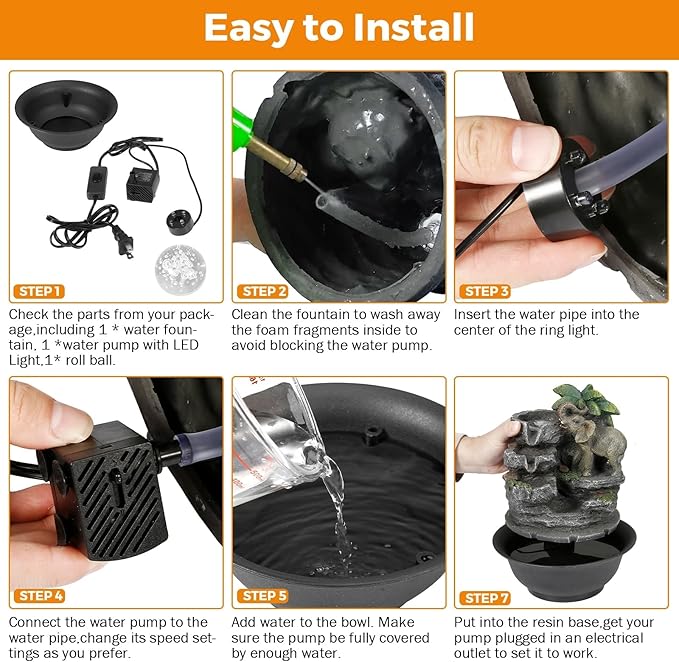 - 【Easy to use】The portable indoor tabletop fountain is easy to use, just add water to the indoor waterfall fountain and plug in a standard power outlet. Then you can enjoy the soothing effect of this indoor fountain.