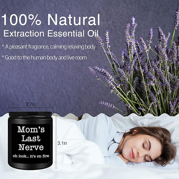 - Lavender Scented Candles: Light scented candles day or night,The unique and fresh scent of lavender permeates every corner of the room.​ Lavender candles can help mom relieve emotions, calm her mood, and also help mom better sleep quality so she can stay relaxed and happy every day. candle gifts are the perfect addition to the home.